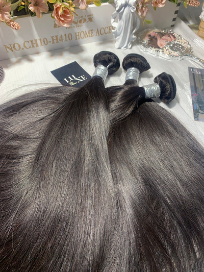 Cuticle-aligned virgin hair for strength, shine, and longevity.